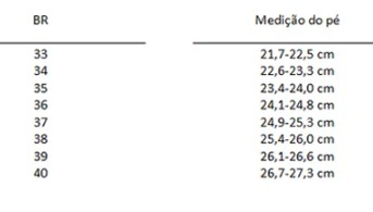 Tabela de Medidas: